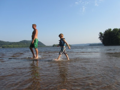 He has had a long week at school. He usually just comes home and needs some decompression time in his room....playing with his "set ups" of train tracks, trucks, and animals. But on river night, we made him change into his trunks right when he got off of the bus and we were on the road!